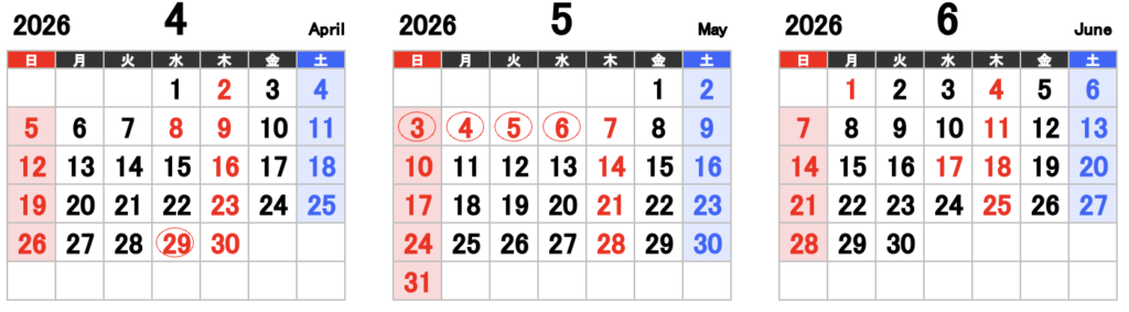祝祭日・年末年始・お盆は休診です。学会出席などのため臨時休診がございます。